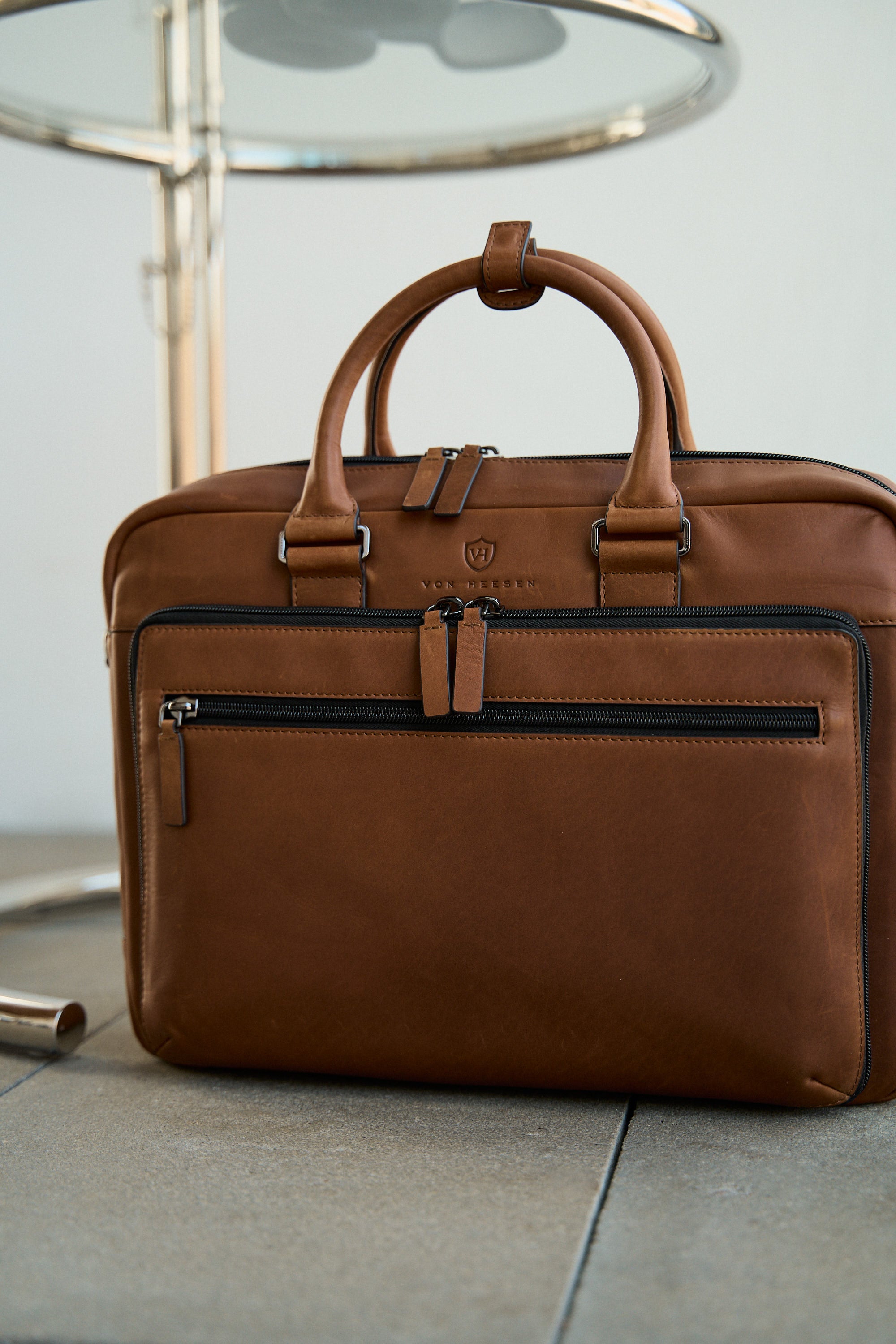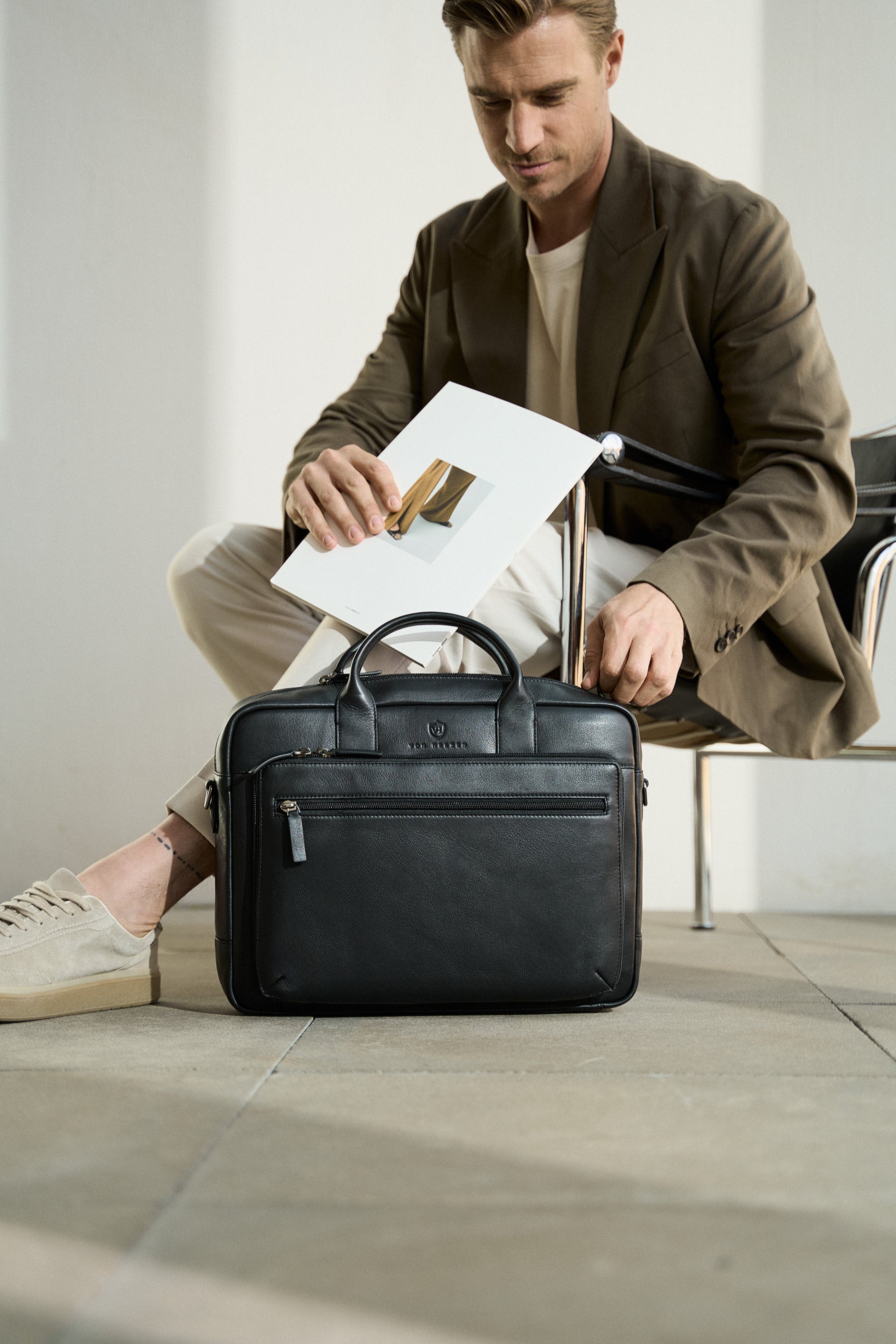 Diese Laptoptasche verbindet eine klare Silhouette mit intuitiver Ordnung, damit Du im Arbeitsalltag strukturiert unterwegs bist. Innen ist alles auf schnellen Zugriff ausgelegt, von Technik bis Unterlagen, ohne aufzutragen. Die stabile Konstruktion schützt Deine Ausstattung zuverlässig im Pendelverkehr und auf Terminen. Echtes Leder und saubere Verarbeitung stehen für langlebige Qualität, die Stil und Funktion souverän verbindet.
