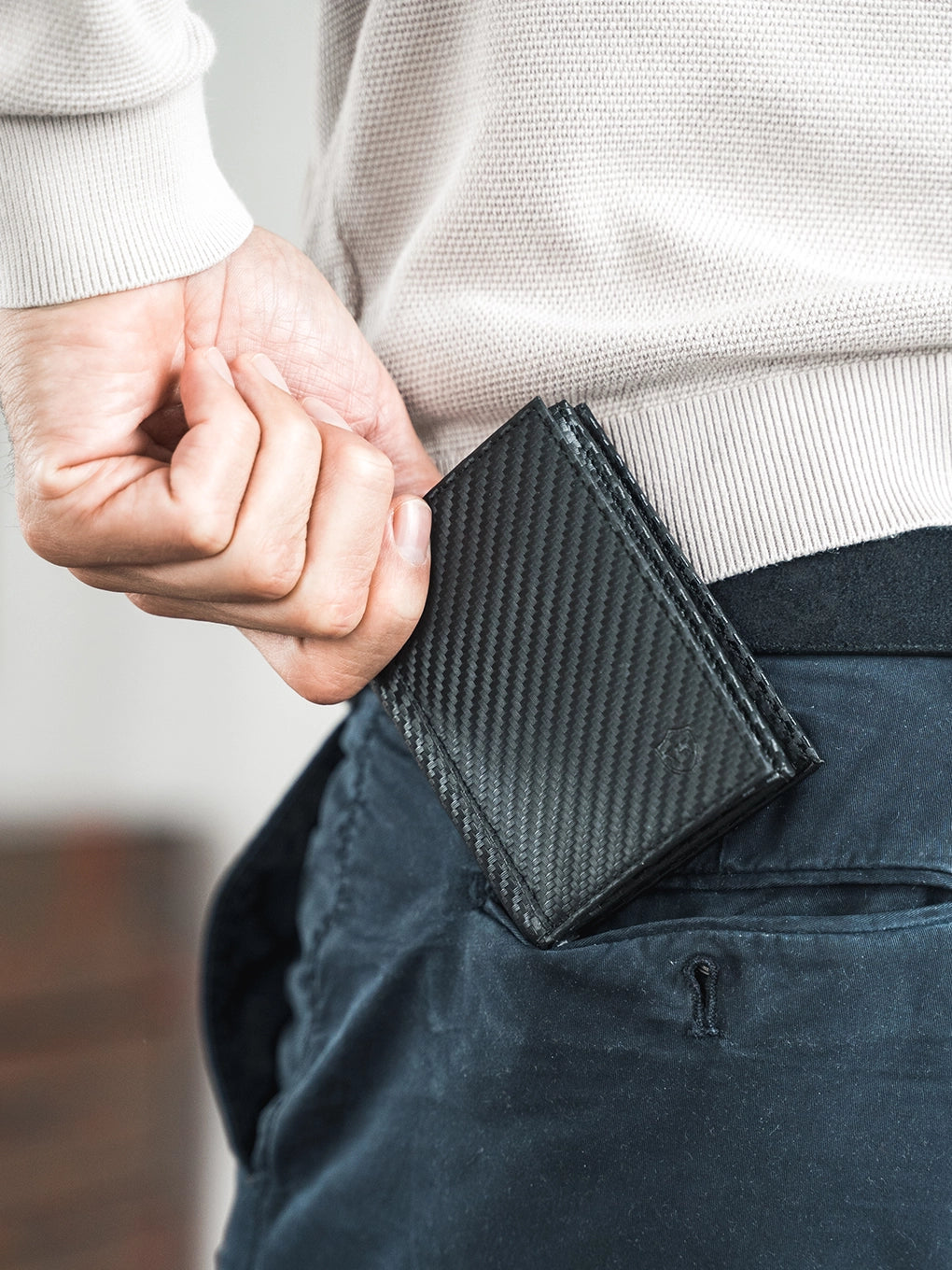 • Echtes Leder mit Carbon-Optik; präzise Nähte und langlebige Verarbeitung.